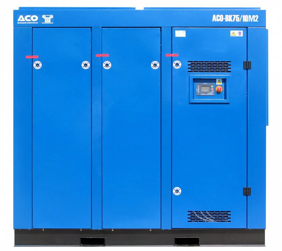 Винтовой компрессор АСО-ВК75/10М2 предназначен для питания локальных пневмосетей сжатым воздухом. Производительность компрессора составляет 9,2 м3/мин. при максимальном давлении 10 атм. Винтовой блок YNE163 RA (BAOSI), электродвигатель мощностью 75 кВт. Рабочий диапазон температур от 5 до 40°С, расход масла на унос не более 2,5 г/час. Уровень шума не превышает 80 дБа. Габариты установки составляют 226 х 130 х 195 см., масса 1480 кг.Установки не требуют постоянного контроля обслуживающим персоналом.