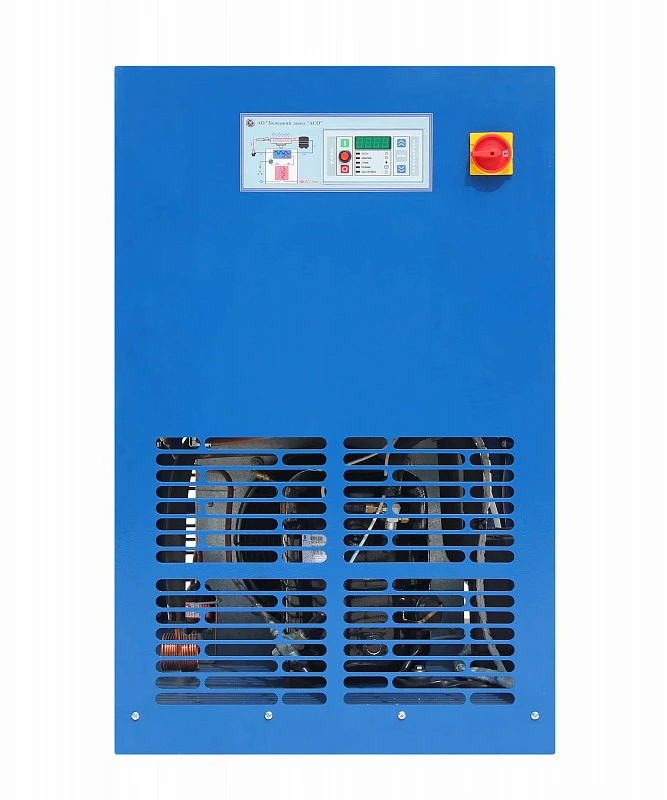 Осушитель снабжен автоматической системой аварийной защиты с возможностью индикации причины аварийного останова. Экстренная остановка и блокировка пуска электродвигателя и компрессора происходит при следующих условиях: